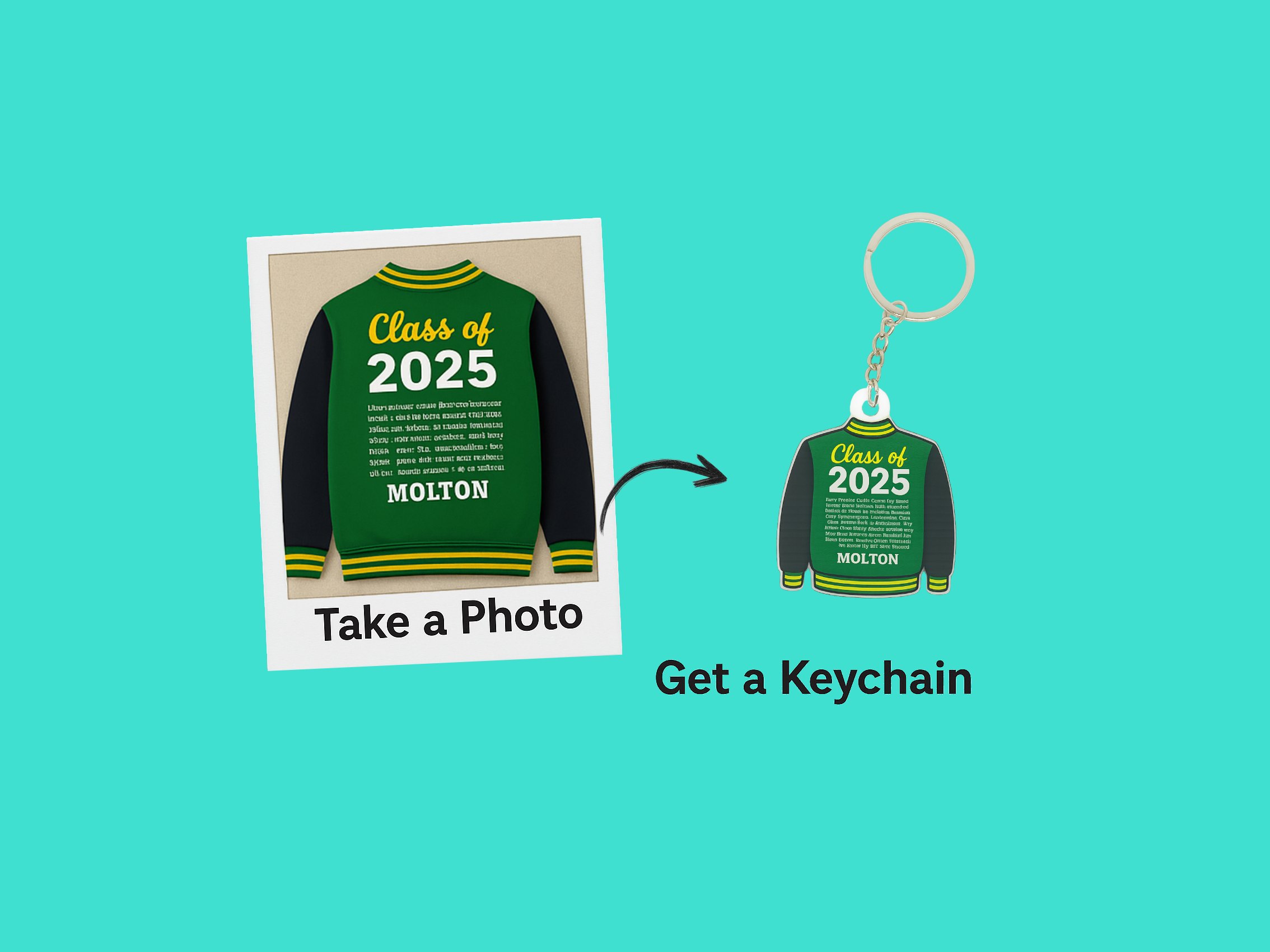 Turn your School Jumper, Sports Jersey or Team Uniform into a personalised acrylic keychain.